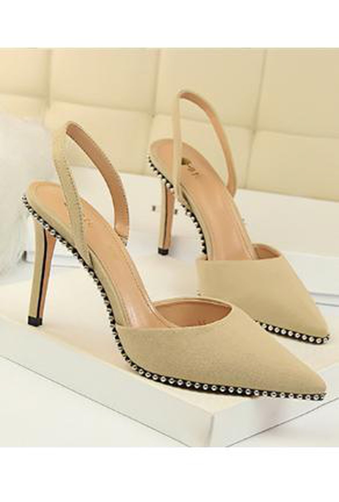 *Sling Back Faux Suede And Leather Studded Bottom Pumps Heels