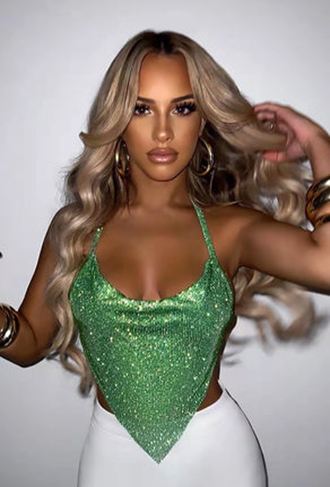 * Diamante in lurex / Forma a V / Parte anteriore con cappuccio / Top corto con sciarpa