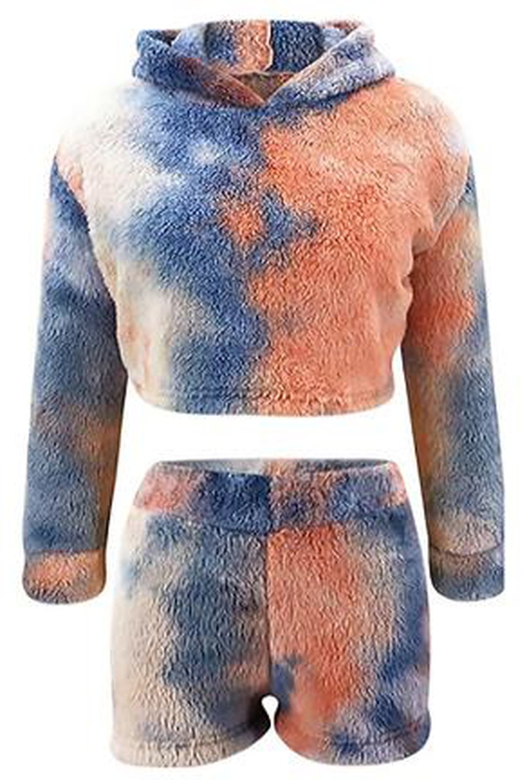 *Set da salotto in pile con cappuccio e pantaloncini stampati