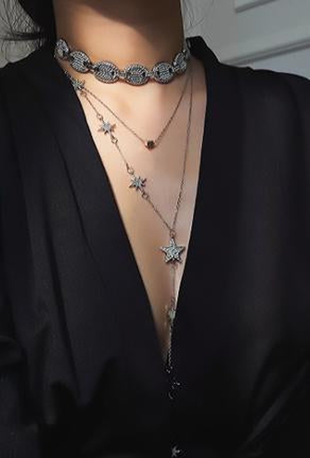 * Girocollo in strass con strass e strati di moda senza collo a tre pezzi