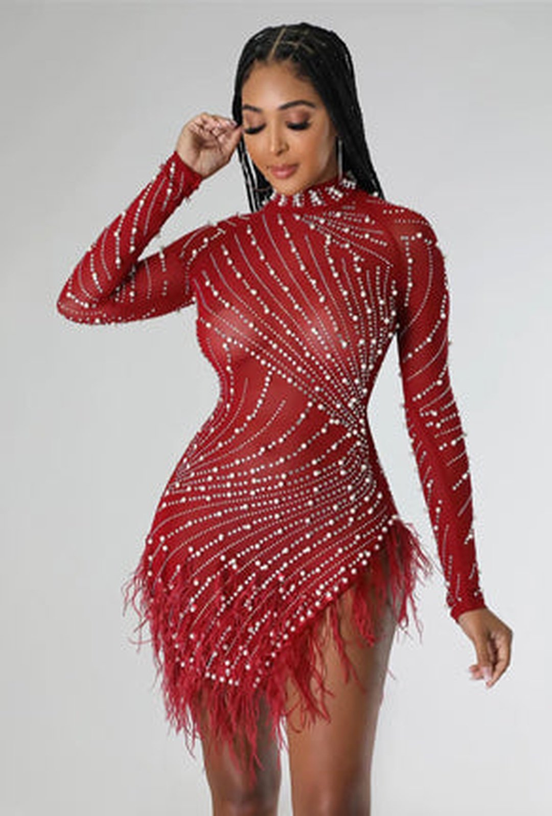 NANCI - FEATHER FRINGE STUDS & BEADS DRESS